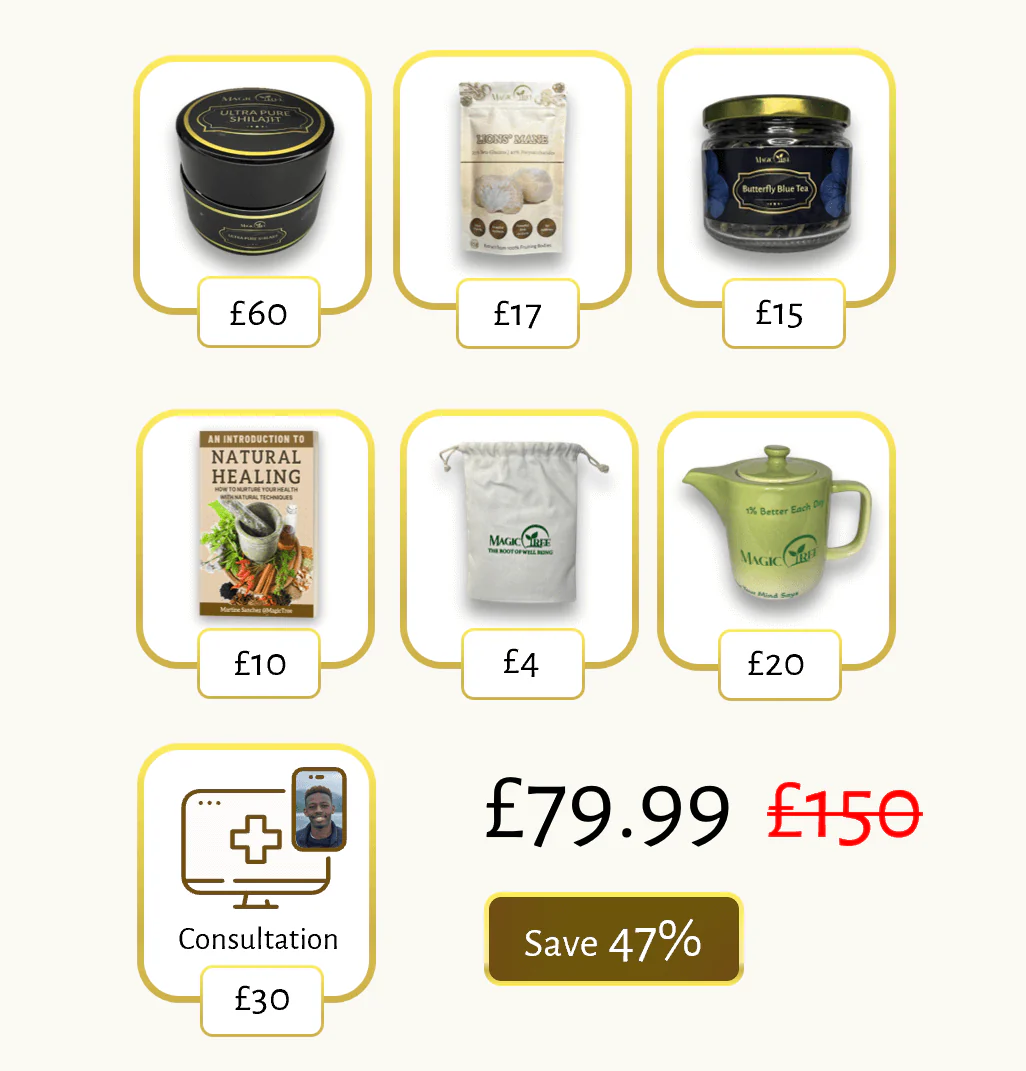 This is the complete bundle to help you start on your health journey, addressing energy, brain support and detoxing. It also includes 2 free items and an E-book and free consultation with a naturopath so you have all the herbs and information you need to take the next step on your natural health journey